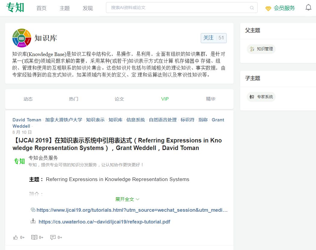 更多“知识库”的相关内容,欢迎登录专知网站www.zhuanzhi.ai,搜索“知识库”关键词查看: