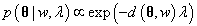 在上式中,是两个顺序矢量之间的Kendall tau distance距离。测量该距离即计算从一个序列到与另一个序列对齐所需要的交换次数。例如,如果θ=(Adams,Washington,Jefferson,Madison,Monroe),则,因为需要进行一次交换来使两个矢量序列相同。类似的,如果θ=(Adams,Jefferson,Washington,Madison,Monroe),则d(θ,w)=2,因为需要经过两次交换才能使两个序列对齐。注意,在Kendall tau distance距离中,只有相邻的项可以交换。参数λ控制矢量序列与真实序列的距离是如何达到峰值的。因此,通过增加λ,模型更有可能使矢量序列达到正确的排序。