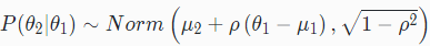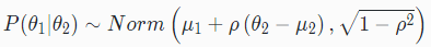 示例1:在上一章的“示例3”中,我们利用Metropolis sampler从二元正态分布中采样。二元正态分布也可以用Gibbs sampling进行高效的采样。在二元正态分布中设: