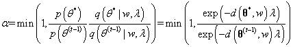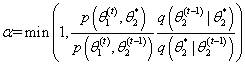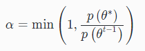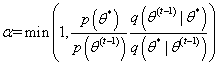 ,该节点是在上一个状态的基础上生成的。下一步就是接受或者拒绝该建议。接受建议的概率是公式2.6: