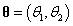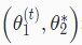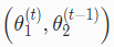 例如,假定我们有一个二元分布θ=(θ1,θ2)。首先用合适的值初始化采样器的