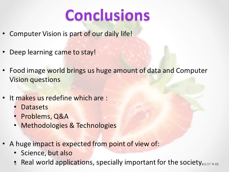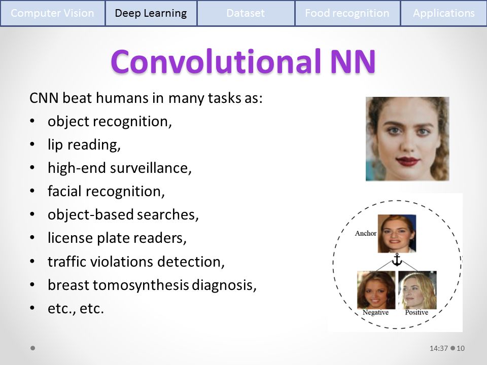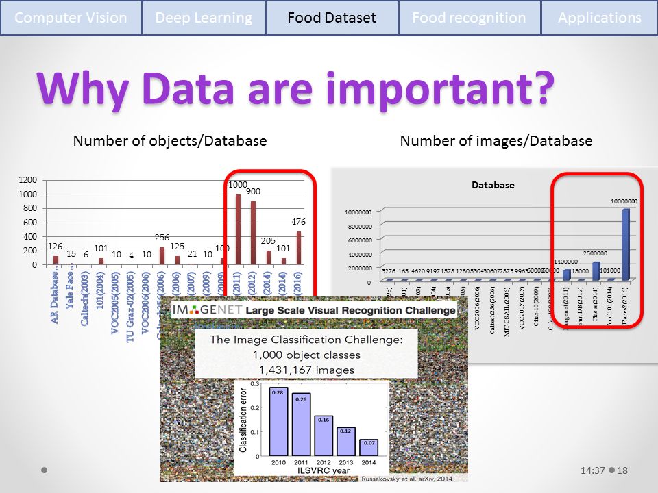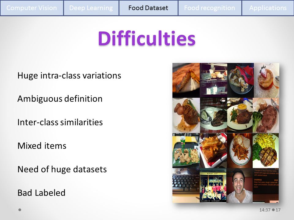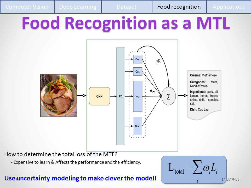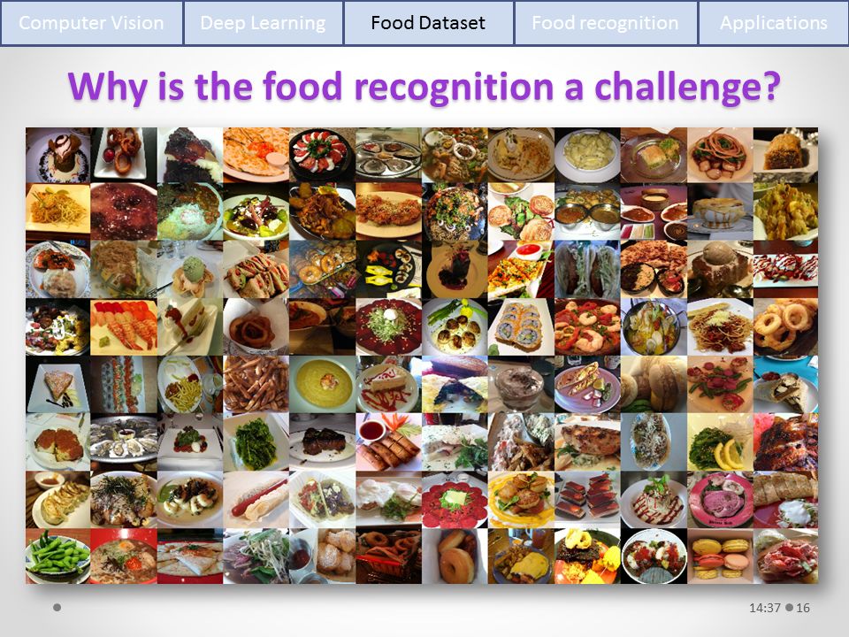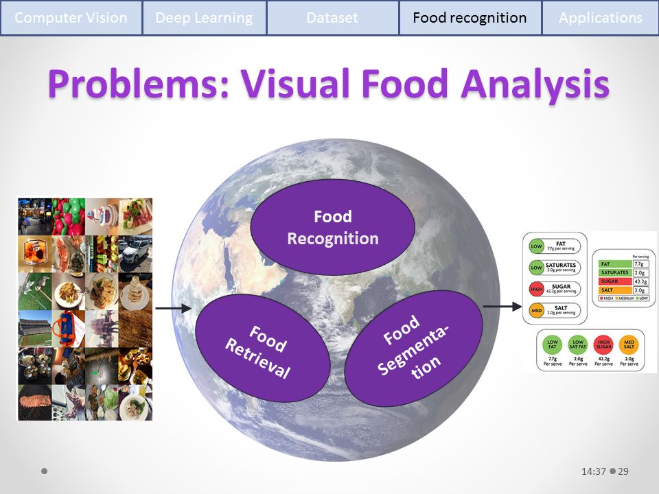 人工智能国际会议 A2IC 2018(Artificial Intelligence International Conference)上作了一场关于食物图像分析的报告,详细讲解了当前计算机视觉中食物图像识别相关研究和应用。PPT内容深入浅出,也分析了“为什么食物图像分析需要使用深度学习?”以及当前遇到的挑战,比如大规模食物数据集的缺失,食物之间内部不同类的不确定性等等,最后也提出了一系列相关方法来尝试解决这些问题,对食物图像识别分析的同学可以仔细学习。