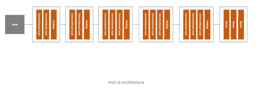 VGG16是我们考虑的第一个架构。它是K.Simonyan和a.Zisserman在《用于大规模图像识别的非常深卷积网络》一文中提出的一种大型卷积神经网络。该网络在ImageNet数据集中实现了92.7%的top-5测试准确性。但是,它经过了数周的训练。这是该模型的高级概述: