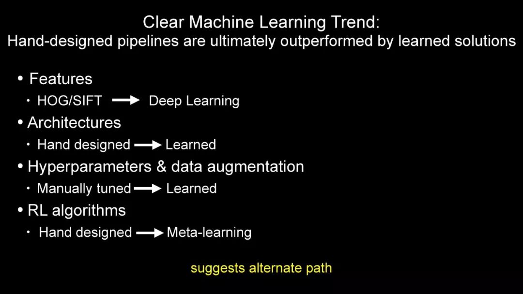 在NeurIPS 2019上,Uber AI(优步人工智能)的高级研究经理Jeff Clune做了关于元学习的92页教程《How Meta-Learning Could Help Us Accomplish Our Grandest AI Ambitions, and Early, Exotic Steps in that Direction》,总结了目前元学习的一些发展情况。