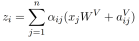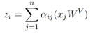 每个输出元素zi被计算为线性变换输入元素的加权和: