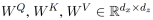 是参数矩阵。这些参数矩阵对每一层和每一个attention head是唯一的。