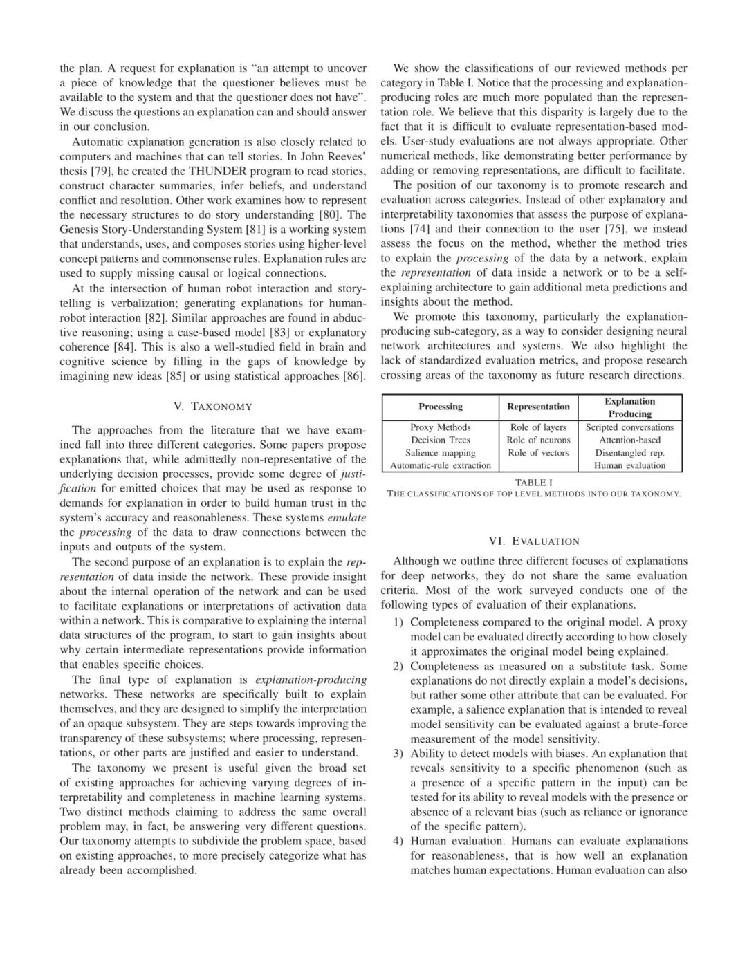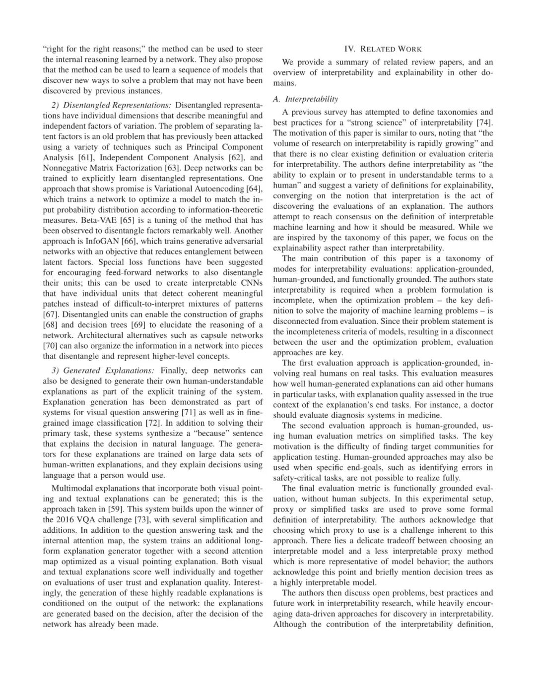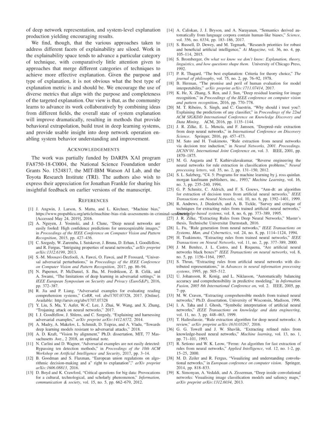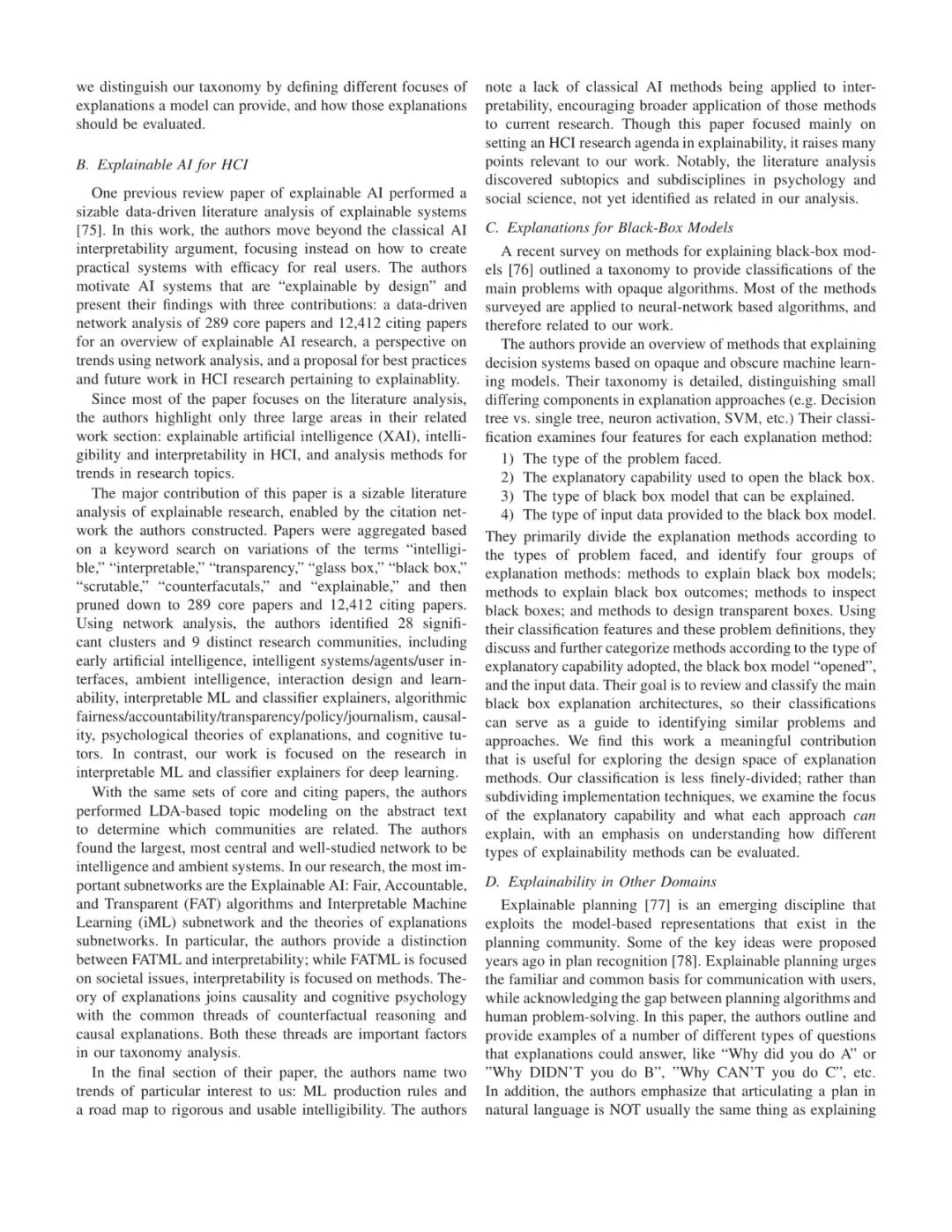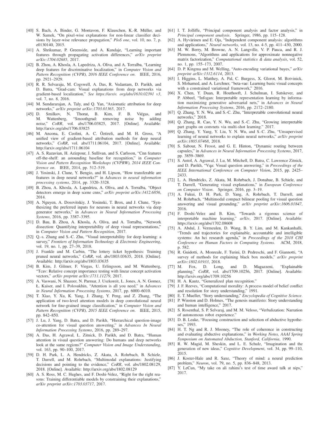 近期涌现了大量的关于可解释性人工智能(XAI)的研究。该领域解决了复杂机器和算法常常不能为它们的行为和思考过程提供理解的问题。XAI使得用户和内部系统的部分更加透明,为它们的决策提供一定粒度的解释。这些解释对于保证算法的公平性、识别训练数据中潜在的偏见/问题以及保证算法按照预期运行有着重要的意义。然而,这些系统产生的解释并不标准化,也没有被系统性地评估。为了能够创建最好的实践和识别公开的挑战,我们描述了可解释性的基础概念,并展示如何使用它们来归类已有的工作。我们讨论了为什么当前面向解释性的方法(尤其是在深度网络上)有着不足。最后,基于我们的调研,我们总结了XAI未来可能的研究方向。