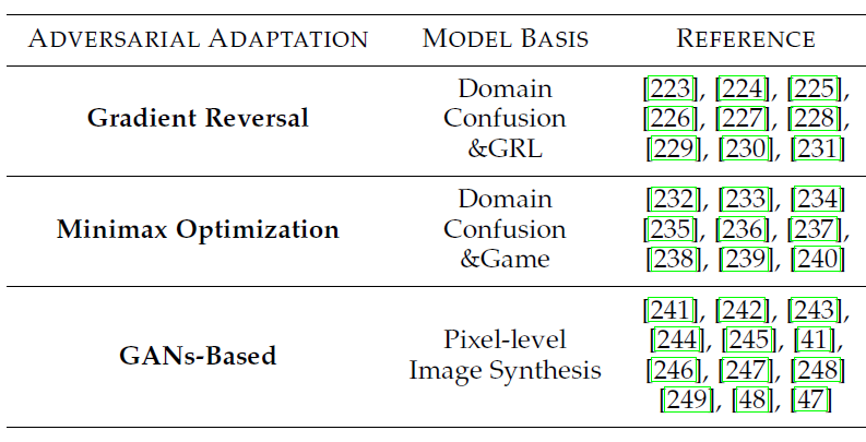 —Adversarial Adaptation。对抗学习产生于生成式对抗网络。TL/DA的目标是使源域和目标域在特征空间上更加接近。这就等于混淆了这两个域,使它们不能轻易区别开来。