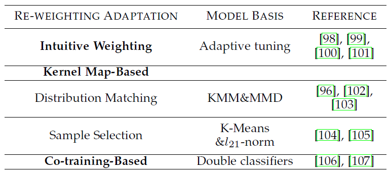 表1 Re-weighting Adaptation方法的分类