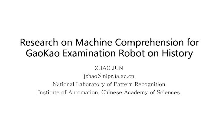 【导读】前一段时间,学霸君和准星云学的机器人解答2017年高考数学科目的试卷,并且学霸君机器人Aidam还与6位高考状元实时PK,拿到134分的高分。高考机器人是人工智能技术应用的一个重要场景。我们来看下来中科院自动化所赵军研究员的机器阅读在高考机器人中的研究与应用。