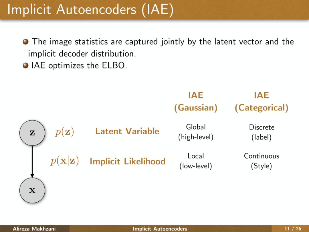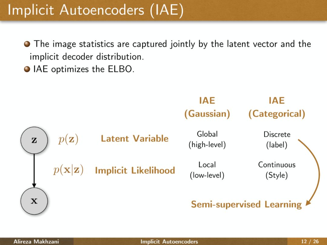 【导读】本期我们将为大家介绍来自多伦多大学Alireza Makhzani博士在Google Brain的最新演讲,隐式自编码器(IAE,Implicit Autoencoders)。