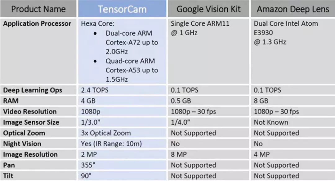 他们的深度学习芯片每秒2.4Tera操作(最高),也是目前市场上最高的,你可以从这个比较中看到:
