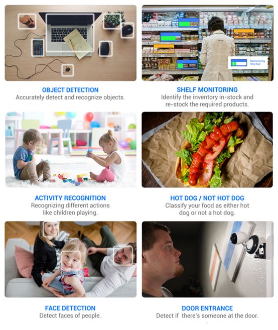 你可以通过使用TensorCam示例项目开始,这些项目涵盖了一些最流行的计算机视觉用例。随着你的技能和想法的发展,你可以使用DLS的云或桌面版本构建自定义的深度学习模型。作为一名开发人员,下面是一些示例,你可以使用最小编码或不编码在TensorCam上构建和部署这些示例: