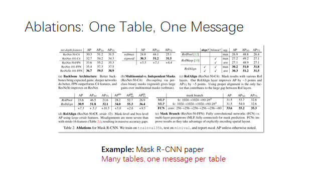 Ablations:一个表,一条信息