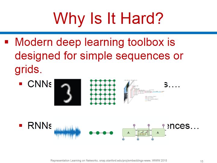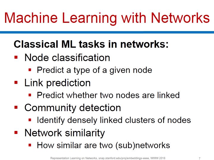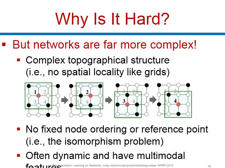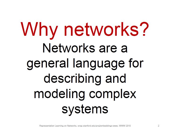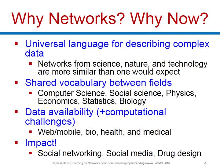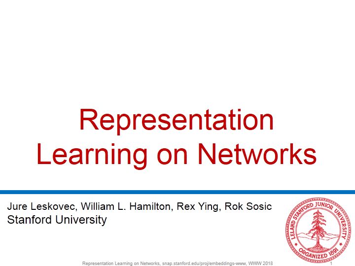 2018 年 4 月 23 日至 27 日,第 27 届国际万维网会议(26th International World Wide Web Conference) 在法国里昂举行。斯坦福大学SNAP组在WWW2018 上举办Tutorial介绍了网络表示学习的最近进展。专知小组整理分享给大家。