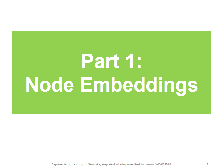 随着社交媒体的飞速发展,大规模社交网络用户的形成使得传统的网络表示方法遇到了瓶颈,由于随着深度学习技术的蓬勃发展以及受自然语言处理领域词嵌入技术的启发,自动学习网络中节点的向量表示成为近年来的研究热点。斯坦福大学SNAP组在WWW2018 上举办Tutorial介绍了网络表示学习的最近进展。