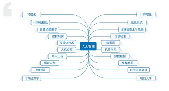 人工智能发展迅速,尤其是近 10年,人工智能领域涵盖了包括自然语言处理、计算机视觉、Web与知识工程、机器人、图形学、可视化、虚拟现实、多媒体、人机交互、语音识别、物联网、计算经济学、计算理论、信息系统、计算机安全、信息检索、数据库、机器学习、数据挖掘等诸多研究方向。
