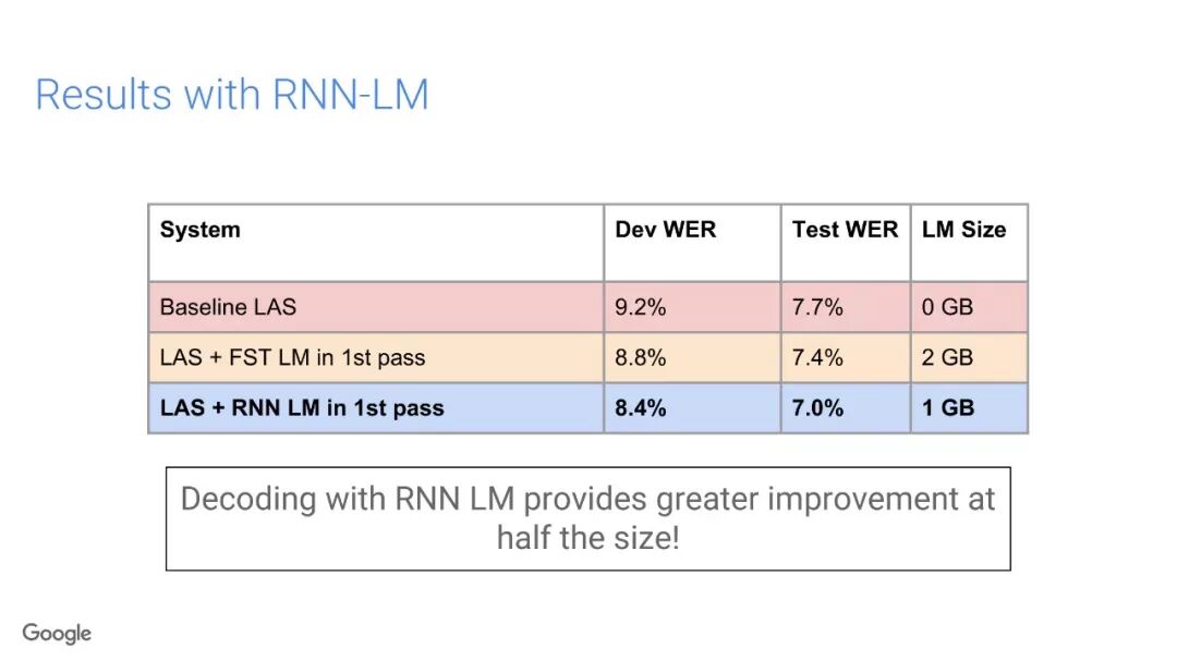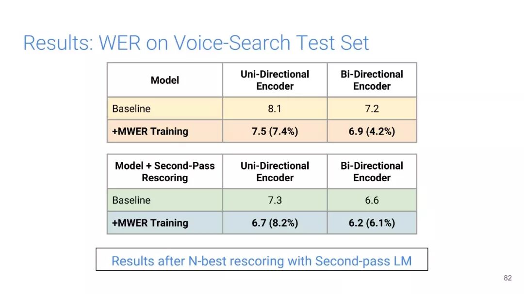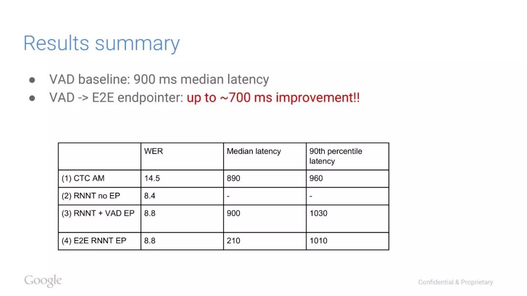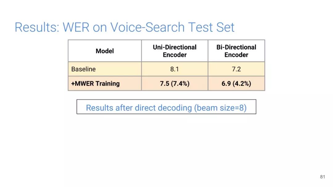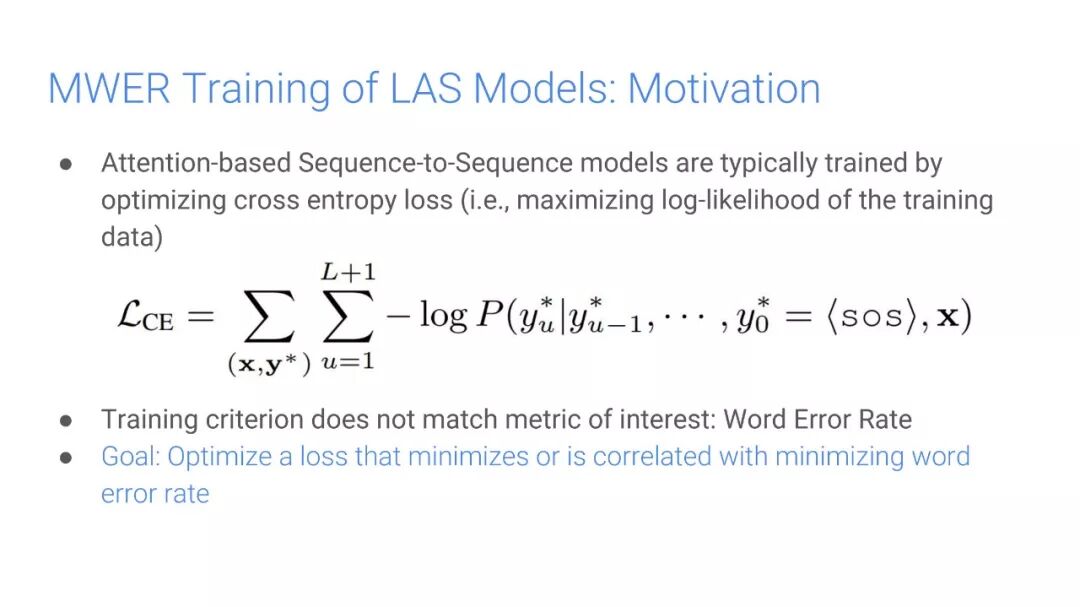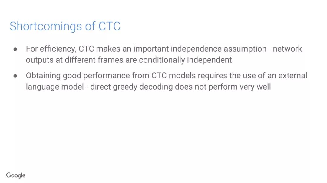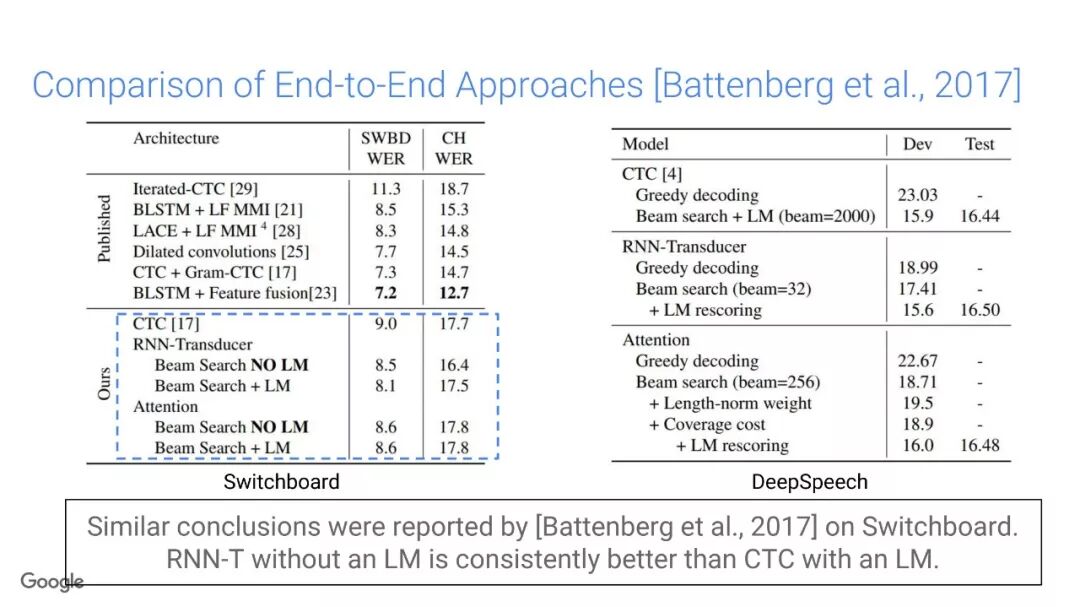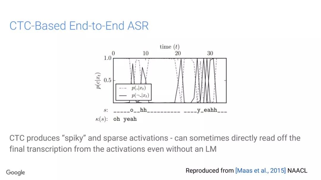在传统的自动语音识别系统中,这些构件是在不同数据集上独立训练的,并且有一些独立的假设以方便处理。而在过去的几年里,人们对开发端到端的语音识别系统越来越感兴趣,这些系统试图在单个系统中完成多个构件的工作。例如基于attention的模型、循环神经传感器、循环神经校准器、目标词时序分类等。这些模型的共同特点在于,它们组成在一个单一的神经网络上,当接收一段语音信息后,直接输出一组图形或文字的概率分布。随着研究的逐渐深入,这种端到端的模型可以超过传统自动语音识别系统的性能。