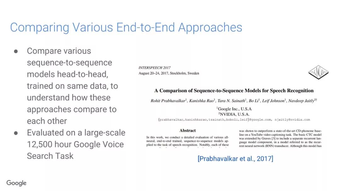【导读】Interspeech是由国际语音通信协会ISCA(International Speech Communication Association)组织的语音研究领域的顶级会议之一,是全球最大的综合性语音信号处理领域的科技盛会,该会议每年举办一次,每次都会吸引全球语音信号领域以及人工智能领域知名学者、企业以及研发人员参加。本期内容为大家整理了google研究人员Rohit Prabhavalkar在大会上的端到端语音识别模型教程,希望对大家有所帮助。