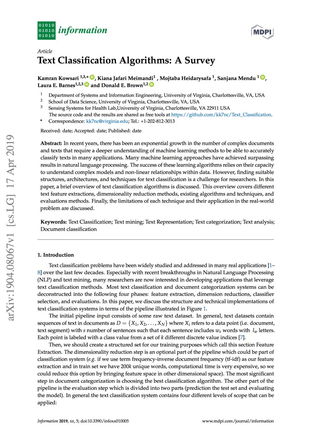 文本分类,是NLP的基础任务,旨在对给定文本预测其类别。然而,基础任务不代表简单任务:文本来源复杂多样,文本粒度有大有小,文本标签之间也有各种关系。面对各种问题,文本分类,仍在飞速发展中。来自美国弗吉尼亚大学的Kamran Kowsari博士等人,用了68页A4纸的篇幅,从0开始,细致的总结了文本分类近些年的发展,循序渐进,新手友好!