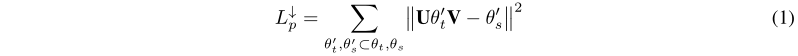 上面的损失函数将学生空间中的可训练变量对齐。或者,我们可以在θs项目可训练的变量在θt一样的形状。这样,公式2中的损失函数(向上投影)可以比较教师空间中的可训练变量。