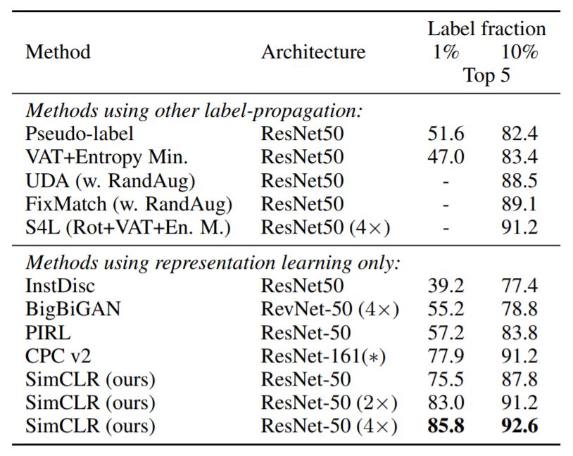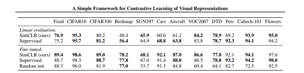 表1:无监督ResNet-50使用线性评价和监督ResNet-50的Top-1准确度。