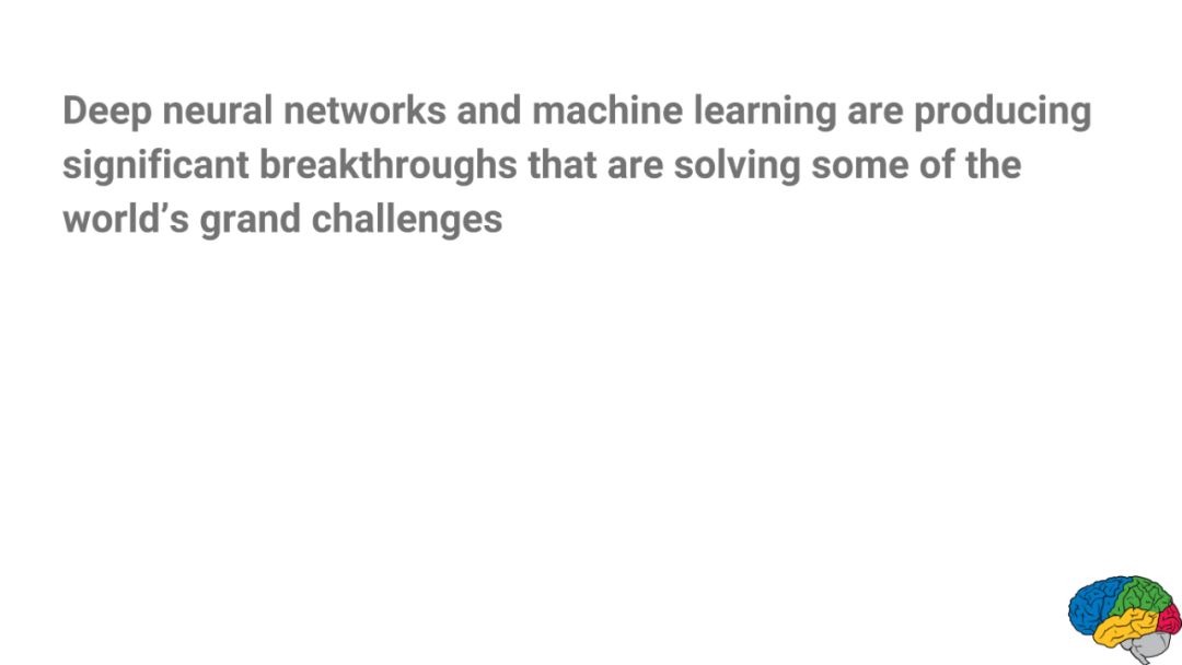 导读:深度学习现在是 AI 领域中最受欢迎的技能之一,应用也十分广泛,且在AI领域也取得了突出的成就。今天给大家带来的是谷歌大神Jeff Dean64页ppt讲述《用深度学习解决挑战性问题》(Using deep learning to solve challenging problems presentation)。
