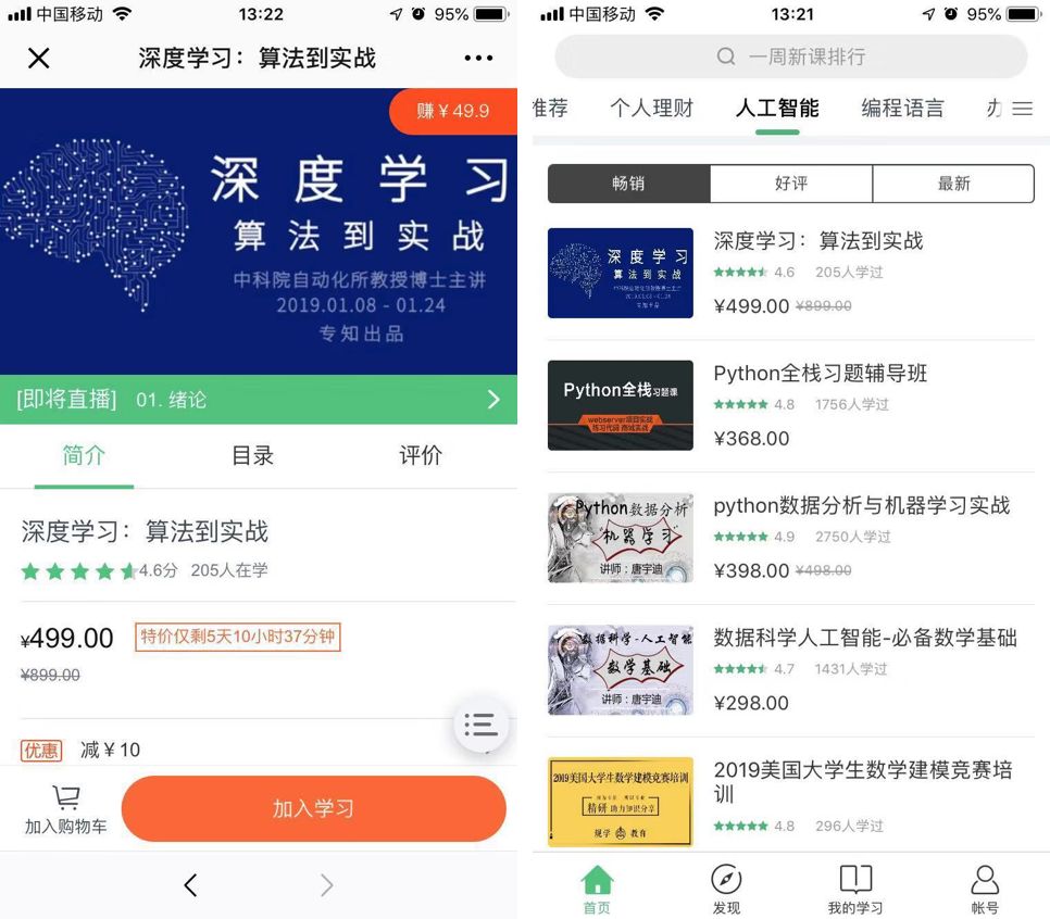 专知《深度学习:算法到实战》205位同学在学习!网易云课堂人工智能畅销榜首位!