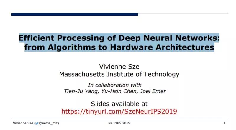 近日,NeurlPS2019 大会放出了一个名为「Efficient Processing of Deep Neural Network: from Algorithms to Hardware Architectures」的演讲。该演讲主要介绍各类能够使硬件高效处理深度神经网络(DNN)计算的方法,包括在计算机视觉、语音识别、机器人等领域,而涉及到的硬件包含了从 CPU、GPU 到 FPGA 和 ASIC 等各类计算硬件。