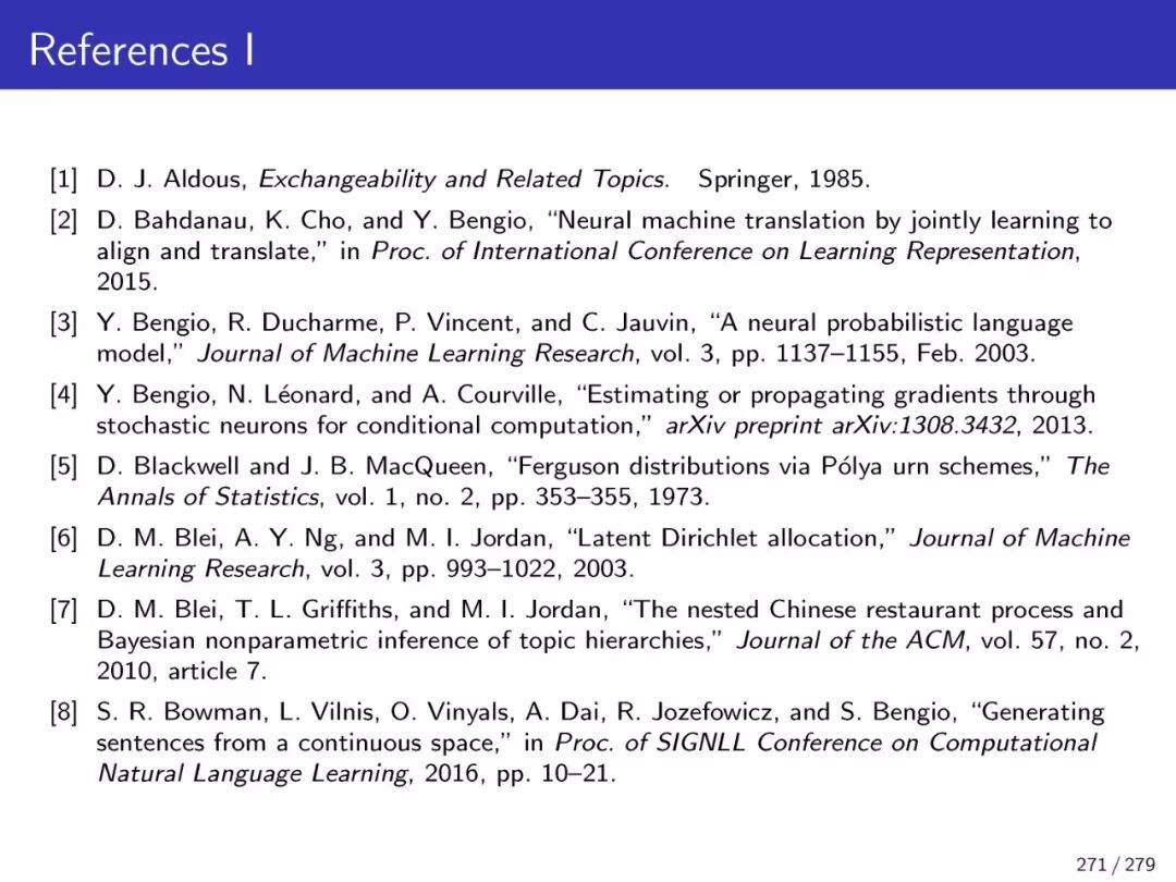 本教程介绍自然语言的深度贝叶斯和序列学习的进展,其广泛在语音识别、文档摘要、文本分类、文本分割、信息提取、图像标题生成、句子生成、对话控制、情感分类、推荐系统、问答和机器翻译等。传统上,“深度学习”被认为是基于实值判别模型进行推理或优化的学习过程。从大量词汇表中抽取的单词、句子、实体、动作和文档中的“语义结构”,在数理逻辑或计算机程序中可能不能很好地表达或正确地优化。自然语言的离散或连续潜在变量模型中的“分布函数”在模型推理中可能无法正确分解或估计。本教程介绍统计模型和神经网络的基本原理,并专注于一系列先进的贝叶斯模型和深度模型包括分层狄利克雷的过程,中国餐馆的过程,层次Pitman-Yor过程,印度自助过程,递归神经网络,长期短期记忆,sequence-to-sequence模型、变分auto-encoder,生成对抗网络,注意机制,memory-augmented神经网络、随机神经网络,预测状态神经网络、策略梯度和强化学习。我们将介绍这些模型是如何连接的,以及它们为什么适用于自然语言中符号和复杂模式的各种应用程序。针对复杂模型的优化问题,提出了变分推理和抽样方法。词语和句子的嵌入、聚类和共聚类与语言和语义约束相结合。针对深度贝叶斯学习和理解中的不同问题,提出了一系列的案例研究。最后,我们将指出一些未来研究的方向和展望。