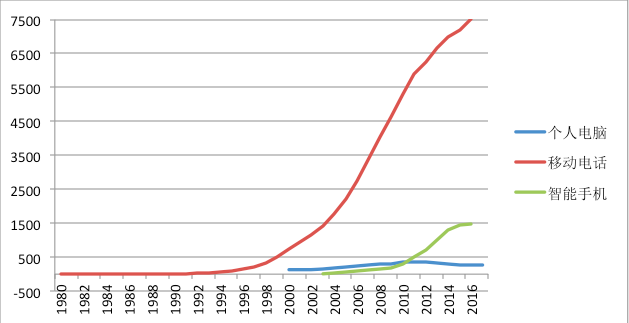 科技发展的S曲线,来源:世界银行、WIND (全球使用量,百万台)