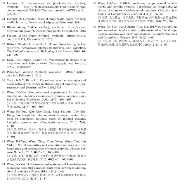 ACP(人工社会 Artiflcial Societies、计算实验 Computational Experiments 和平行执行 Parallel Execution)方法是迄今为止平行社会管理领域唯一成体系化的、完整的研究框架,是复杂性科学在新时代平行社会环境下的逻辑延展和创新[35]。ACP 方法可以自然地与区块链技术相结合,实现区块链驱动的平行社会管理: