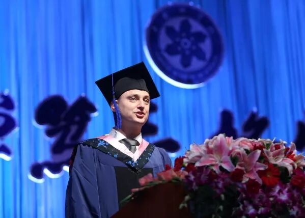 学位授予仪式上,首届学士学位获得者代表曹政,2018年度博士学位获得者代表蔡镇锋,留学生代表、来自丹麦的硕士学位获得者Jonas Hammerstroem,以及首届本科生学业导师代表、中科院计算技术研究所徐志伟教授,研究生导师代表、中科院物理所韩秀峰教授先后登台发言。