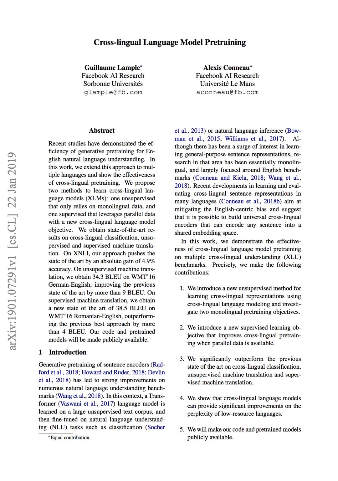 后台回复“XLM” 就可以获取该论文《Cross-lingual Language Model Pretraining》下载链接~
