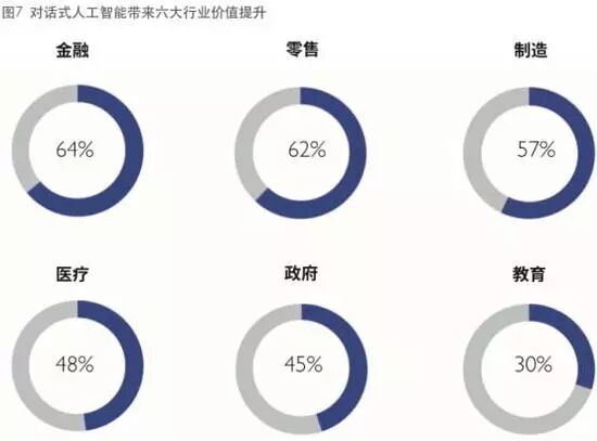 据IDC研究,预计在未来5年内,对话式人工智能在金融、零售、制造、医疗、政府和教育等六大行业至少会带来30%-64%的价值提升。