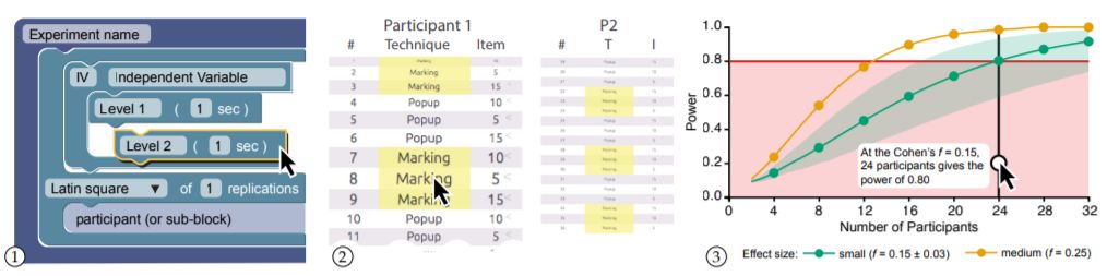 Touchstone2提供了一个直接操作界面,用于生成和检查实验设计中的权衡。在与经验丰富的研究人员访谈的基础上,我们开发了一个交互环境,用于操作实验设计参数,显示试验表中的模式,以及估计和比较统计能力。我们还开发了TSL,一种精确表示实验设计的声明性语言。在两项研究中,经验丰富的HCI研究人员成功地使用Touchstone2评估设计权衡,并计算特定效果大小需要多少参与者。我们将讨论Touchstone2的优点和局限性,以及未来的研究方向。