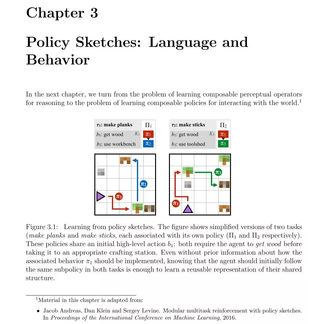 作者首先介绍一类称为神经模块网络(NMN)的模型,并介绍它们在自然语言问答中的应用。NMN旨在实现同时利用深层网络的表征能力和构成问题的语言结构。我们的方法将问题分解为语言子结构,并使用这些子结构动态地从可重复使用的模块库构建网络。由此产生的复合网络是共同训练的。作者并在含有图像和结构化知识库的问答数据集上的方法评估模型。随后,作者将这种思想转移到策略学习中,研究在面对不同但相似的问题时,怎么组合策略。