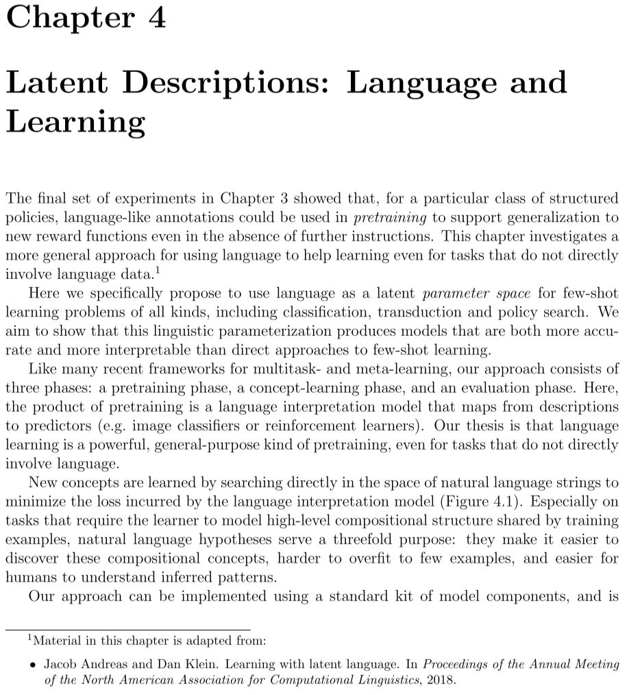 【导读】作者Jacob Andreas是自然语言处理的研究者,研究兴趣为用语言作为更有效学习的支架和理解模型行为的探针,以及结合深度表示和离散组合性优点的结构化神经方法。近期公开发布了他的博士论文,该论文
