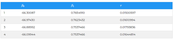 经过这样的采样,我们得到了θ=(β0;β1;τ)的采样数据: