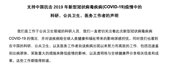 附:支持中国抗击2019年新型冠状病毒疾病(COVID-19)疫情中的科研、公共卫生、医务工作者的声明(中文版)
