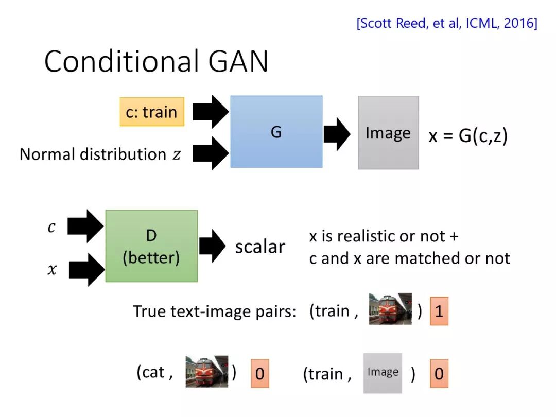 条件GAN中,可由图片生成图片,声音生成图片,图片生成标签等应用