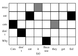 注意,问题和回答中的单词都是按照原始顺序摆放的,这使得当问题和回答中有相同或相似序列时,矩阵中Cosine相似度的分布会呈现一定的规律性。