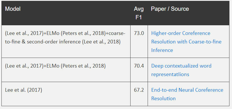 模型通常通过基于 F1 的 OntoNotes 基准进行评估(《Towards Robust Linguistic Analysis Using OntoNotes》)。