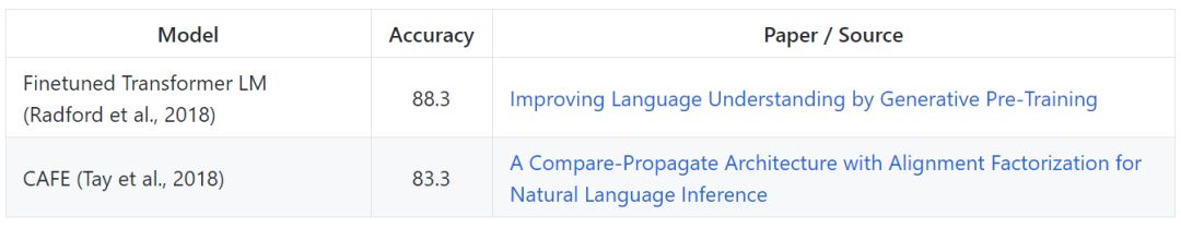 可以在 SNLI 的网站上查看当前最佳结果:https://nlp.stanford.edu/projects/snli/