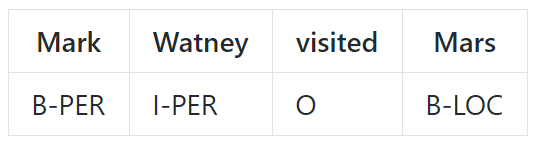 命名实体识别(NER)是在文本中以对应类型标记实体的任务。常用的方法使用 BIO 记号,区分实体的起始(begining,B)和内部(inside,I)。O 被用于非实体标记。