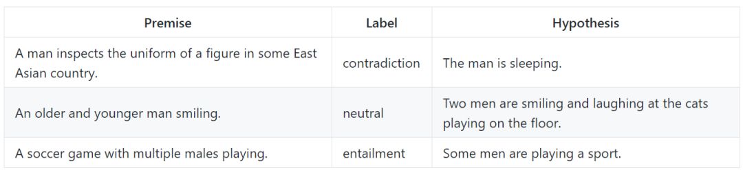 自然语言推理是给定一个「前提」,确定一个「假设」为真(蕴涵)、假(矛盾)或者不确定(中性)的任务。