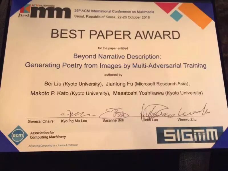 【导读】第26届ACM国际多媒体会议(ACM International Conference on Multimedia, 简称ACM MM)于2018年10月22日至26日在韩国首尔隆重举行。自1993年首次召开以来,ACMMM每年召开一次,已经成为多媒体领域顶级会议,也是中国计算机学会推荐的A类国际学术。会议热门方向有大规模图像视频分析、社会媒体研究、多模态人机交互、计算视觉、计算图像等等。就在昨天,包括最佳论文,最佳学生论文,最佳demo, 最佳开源软件在内的所有多媒体领域大奖都已出炉。