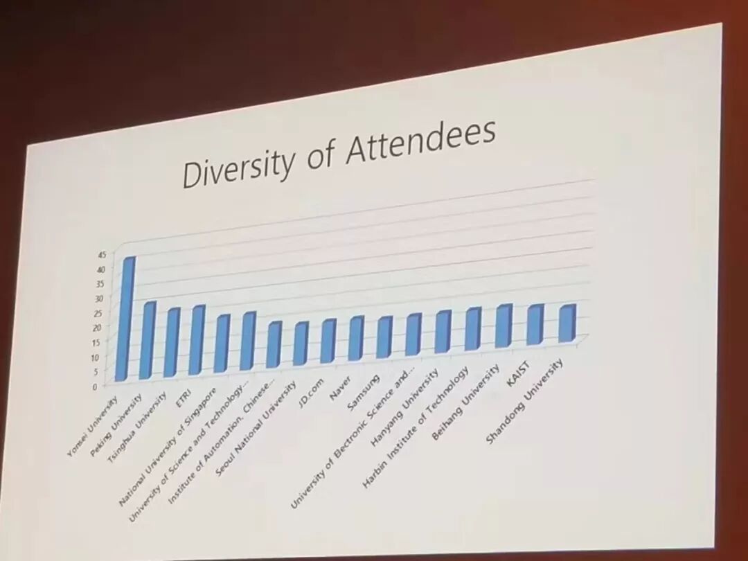 这是此次参会的不同机构的人数统计,能够看到国内北京大学、清华大学、中科大、中科院自动化研究所等都排在前列。