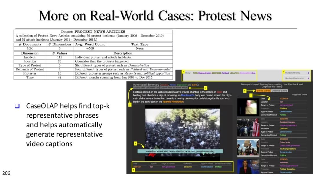 在本教程中,我们介绍了数据驱动的方法,以便从不同类型的文本语料库构建结构化文本多维数据集(特别是对于大规模的,特定领域的文本语料库)。这种文本异构网络可以提供更多结构信息和指导来进一步增强数据挖掘能力。我们专注于弱监督、与领域无关的、语言无关的方法,以便在各类领域可以实现快速的、高质量的文本网络构建。进而,在真实的数据集上示范了,如何在新闻文章、科学出版物、产品评论等信息上,构建文本信息网络以协助对大规模文本语料库进行多维分析。