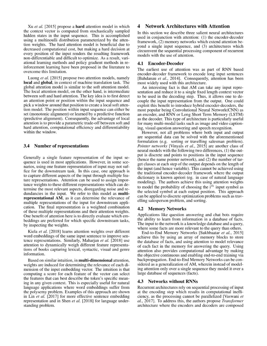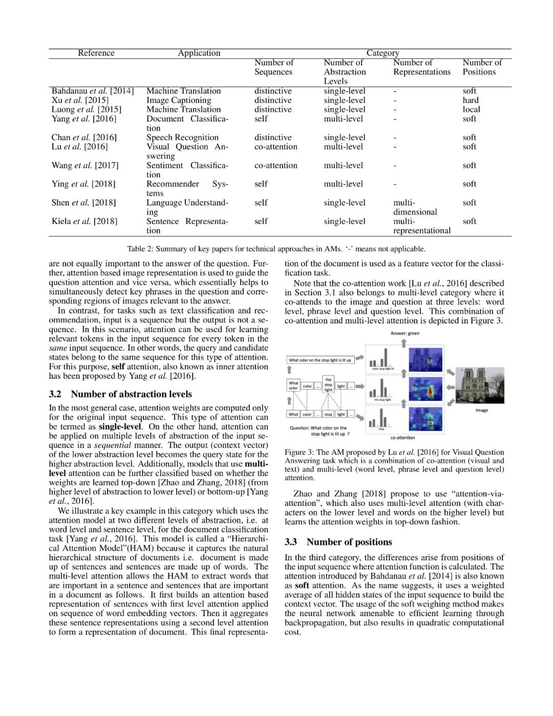文章从Number of Sequences、Number of Abstraction Levels、Number of Positions、Number of Representations等多个维度对注意力模型进行了分类,具体结果如下: